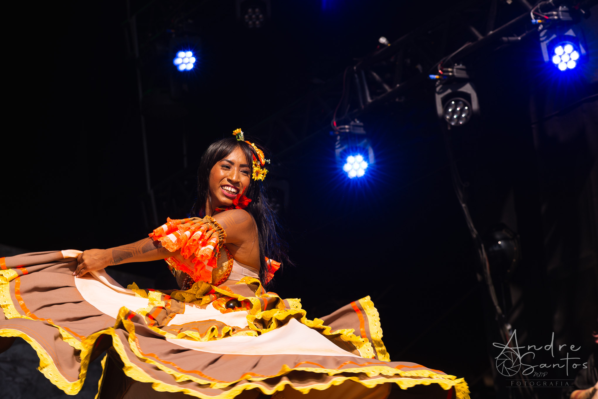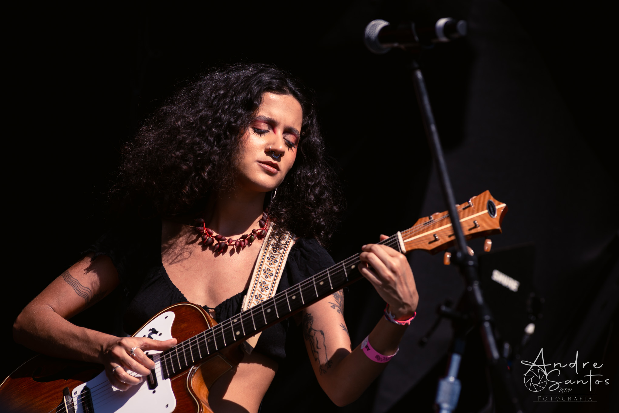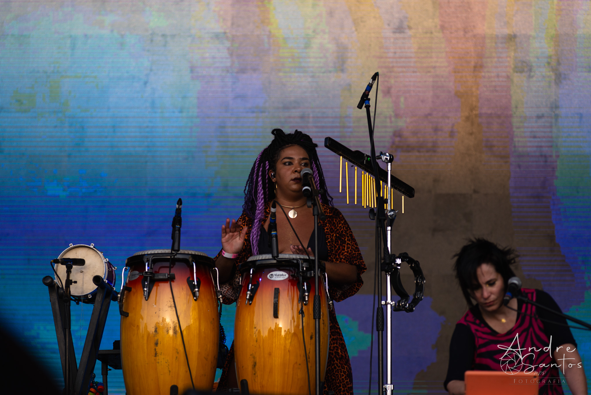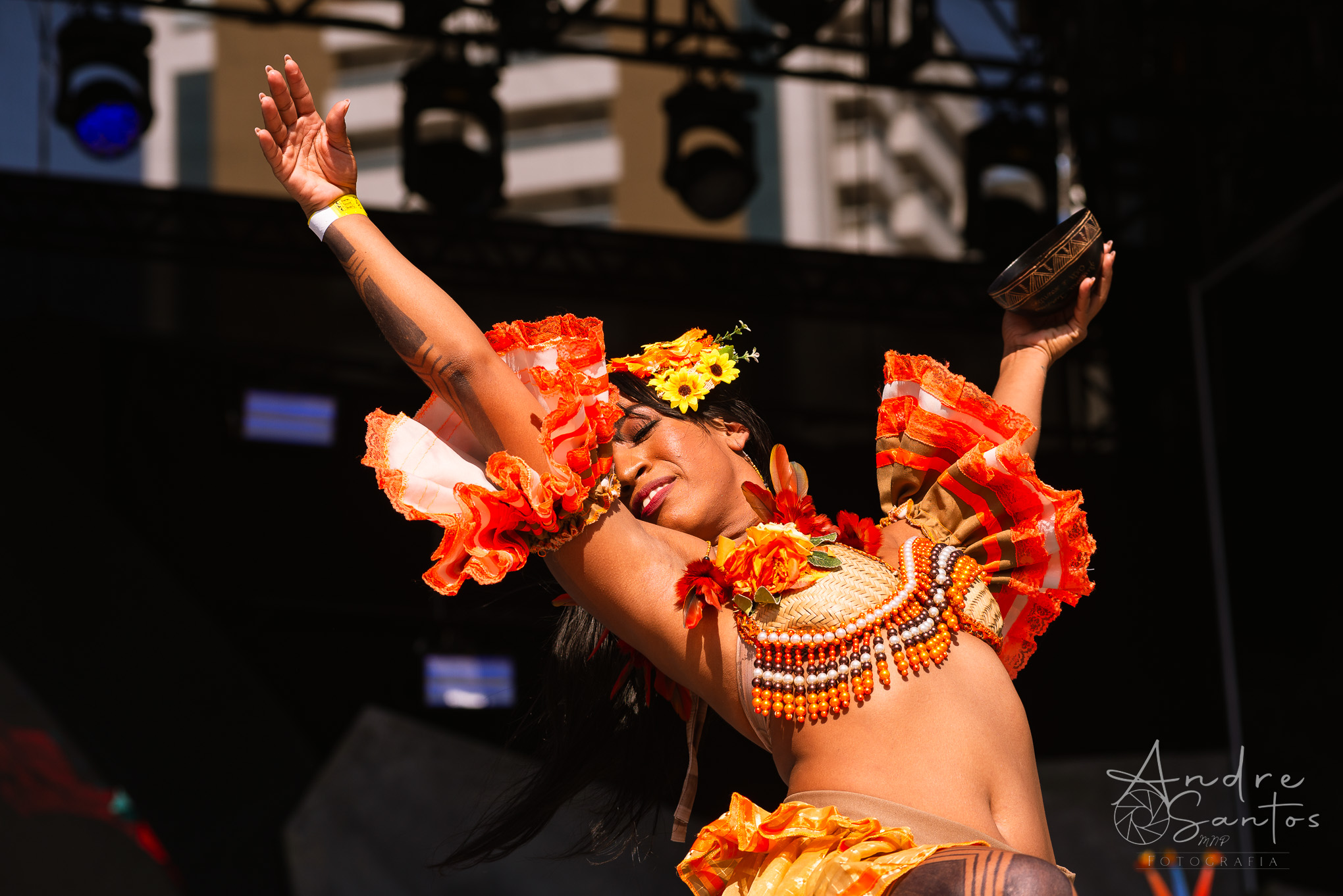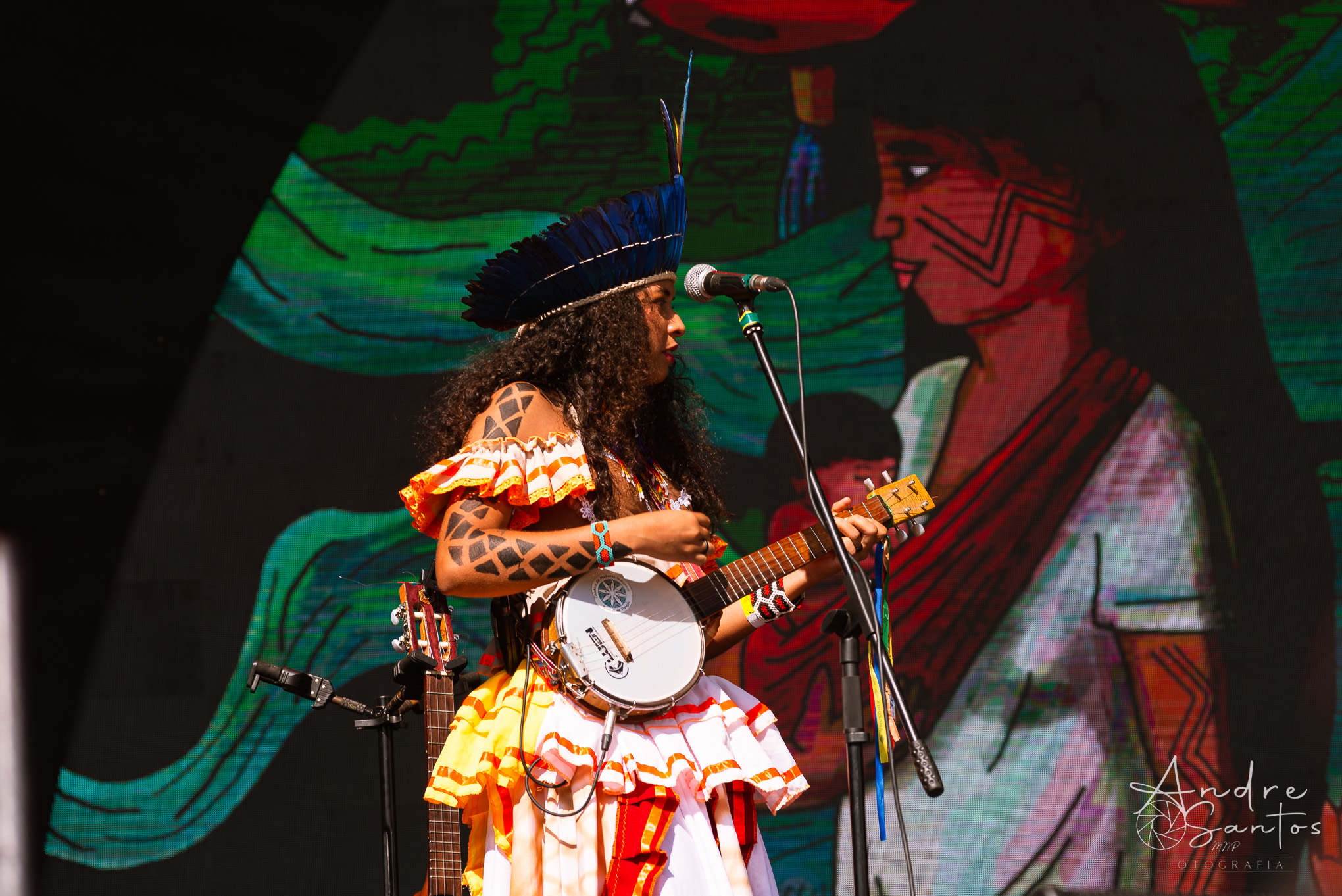 Em seguida, foi a vez da Suraras dos Tapajós, um grupo feminino do Pará que ergue a bandeira contra o machismo e exalta o empoderamento das mulheres indígenas. O show teve início com um protesto sob o tema “demarcação já”. À medida que a performance avançava, o público foi dominado pela envolvente percussão, movimentos de dança cativantes e os ritmos contagiantes do carimbó. Às vésperas do encerramento, Lucas Estrela, um dos guitarristas mais renomados do Norte do Brasil, fez uma breve participação especial, adicionando ainda mais brilho ao espetáculo. Foi um set muito criativo, marcado pela dança, pela beleza dos trajes tradicionais indígenas e por uma produção visual deslumbrante.