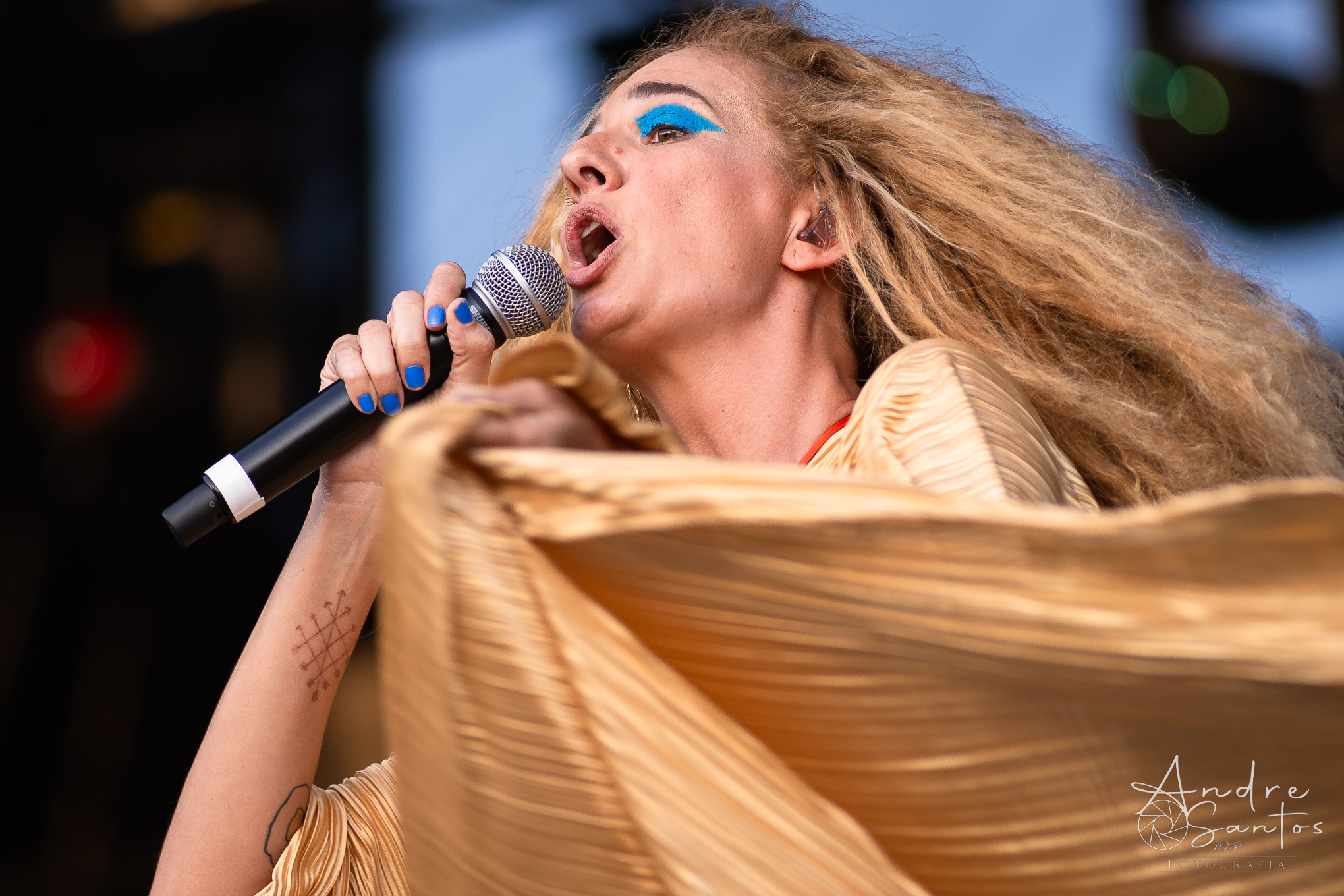Lamentavelmente, um dos sets mais esperados do dia passou uma mudança significativa. Angela Rô Rô, que estava programada para se apresentar ao lado de Letrux, teve que cancelar sua participação devido a problemas de saúde. Entretanto, a artista carioca manteve o compromisso com maestria. Com sua personalidade ímpar, maquiagem pesada e movimentos energéticos pelo palco, a cantora conquistou a plateia com suas canções carregadas de sensualidade, como “Hiena” e “Que Estrago”. Houve ainda uma bela homenagem a Angela Rô Rô, com a interpretação de “A Mim e a Mais Ninguém” e “Amor, Meu Grande Amor”.
