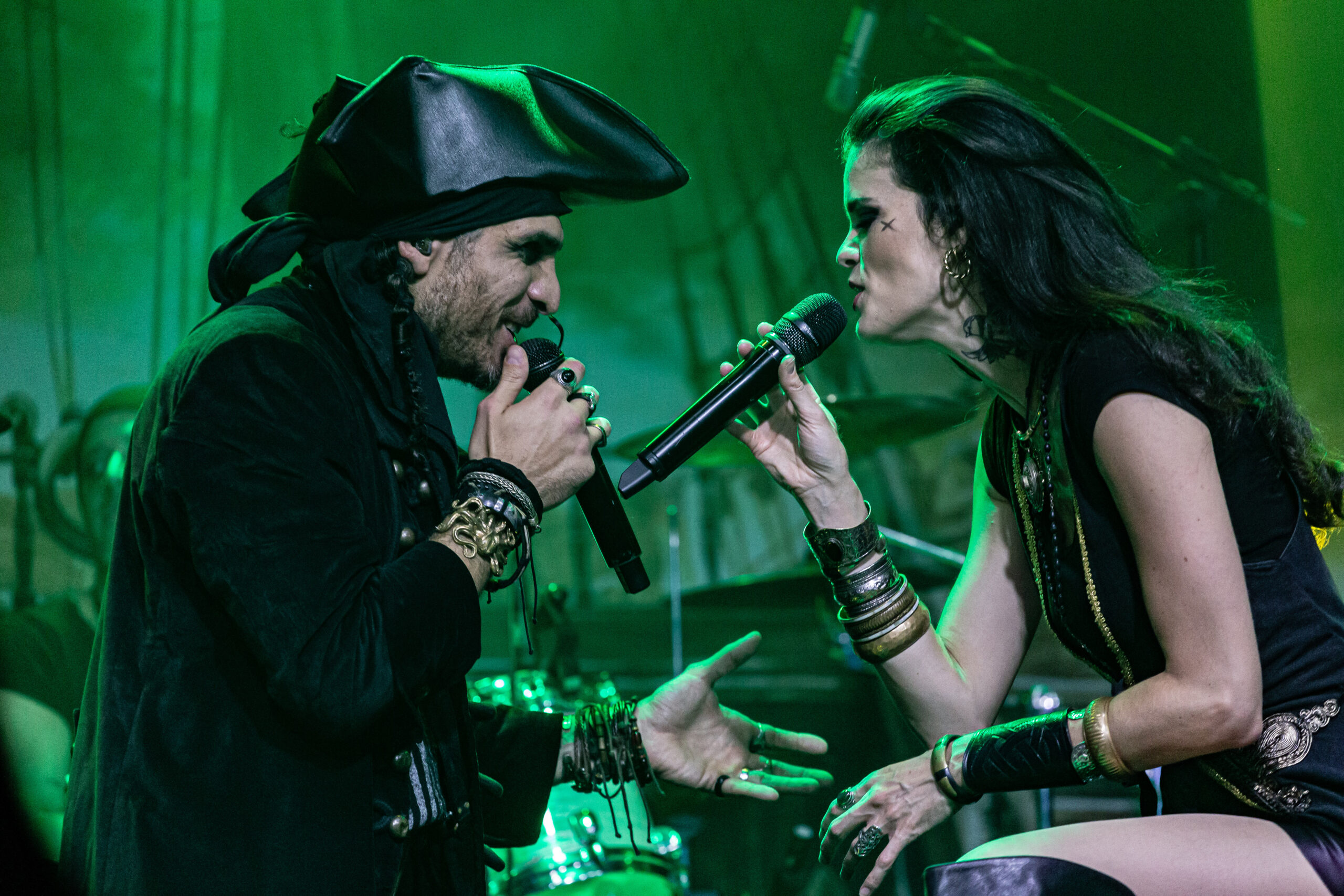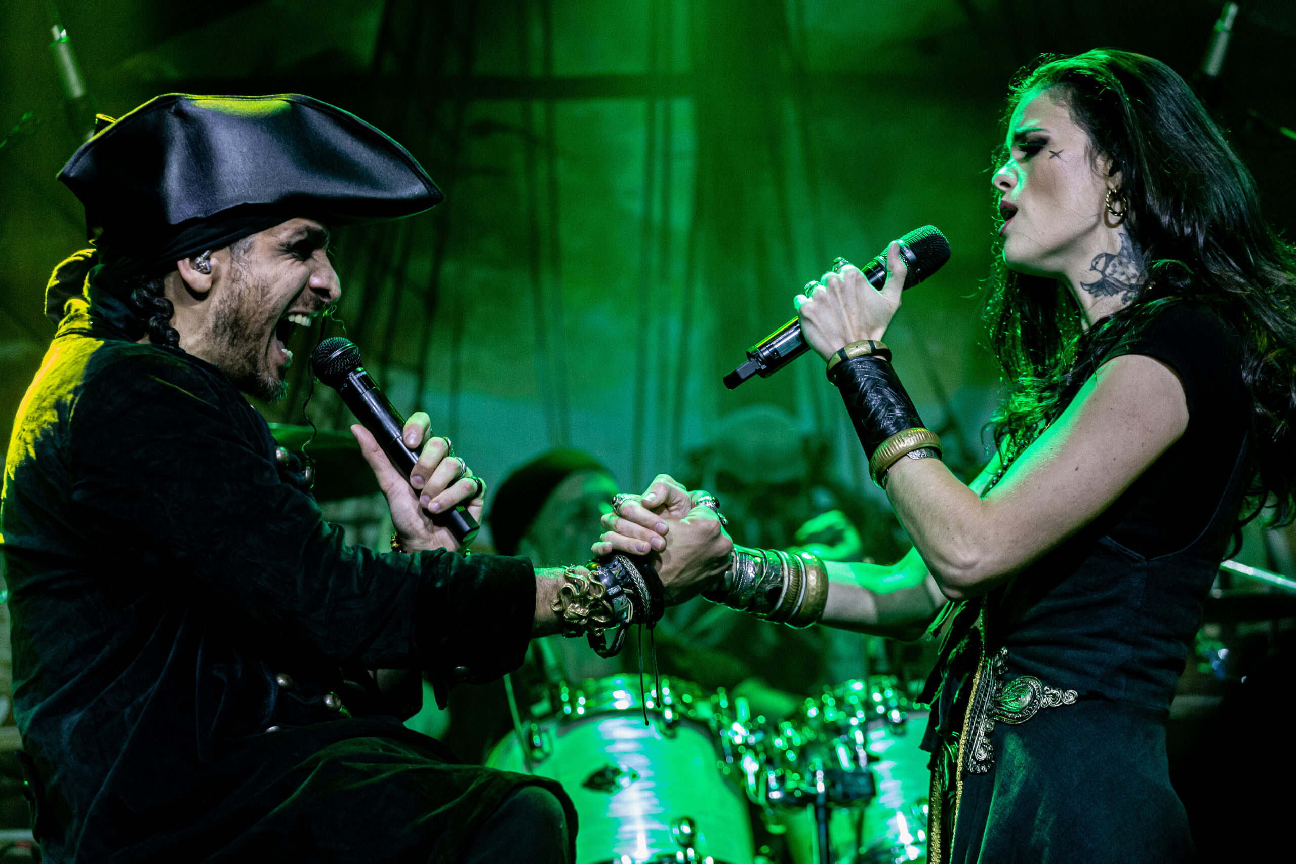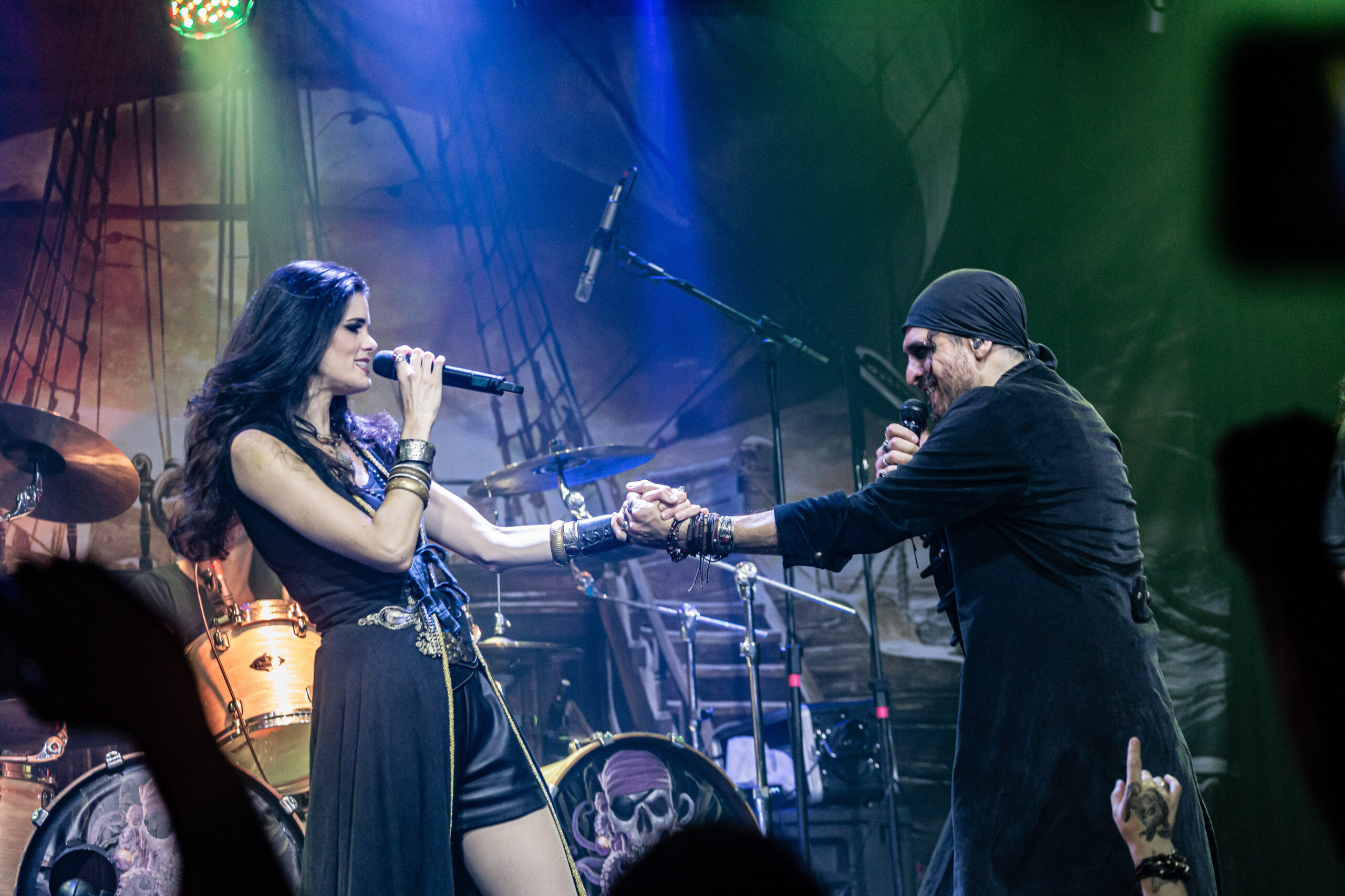 Mantendo as canções emocionantes, a banda toca “Darkness Inside” que também faz parte do álbum “Pirates”. Já do “Deep and the Dark”, eles tocam “Return to Lemuria”, antes, Clémentine conta que a banda passou por diferentes estilos até se encontrarem como piratas, mas era sempre bom retornar à suas origens. Uma coisa que vale muito ressaltar é a qualidade da banda na hora de tocar e as potências vocais dos dois vocalistas. Meek navega por diferentes sonoridades indo dos vocais limpos, aos líricos e drives trazendo uma textura diferente para cada música. Já Clémentine canta com facilidade até mesmo quando alcança notas mais altas e em nenhum momento aparenta ter dificuldade em usar sua voz.