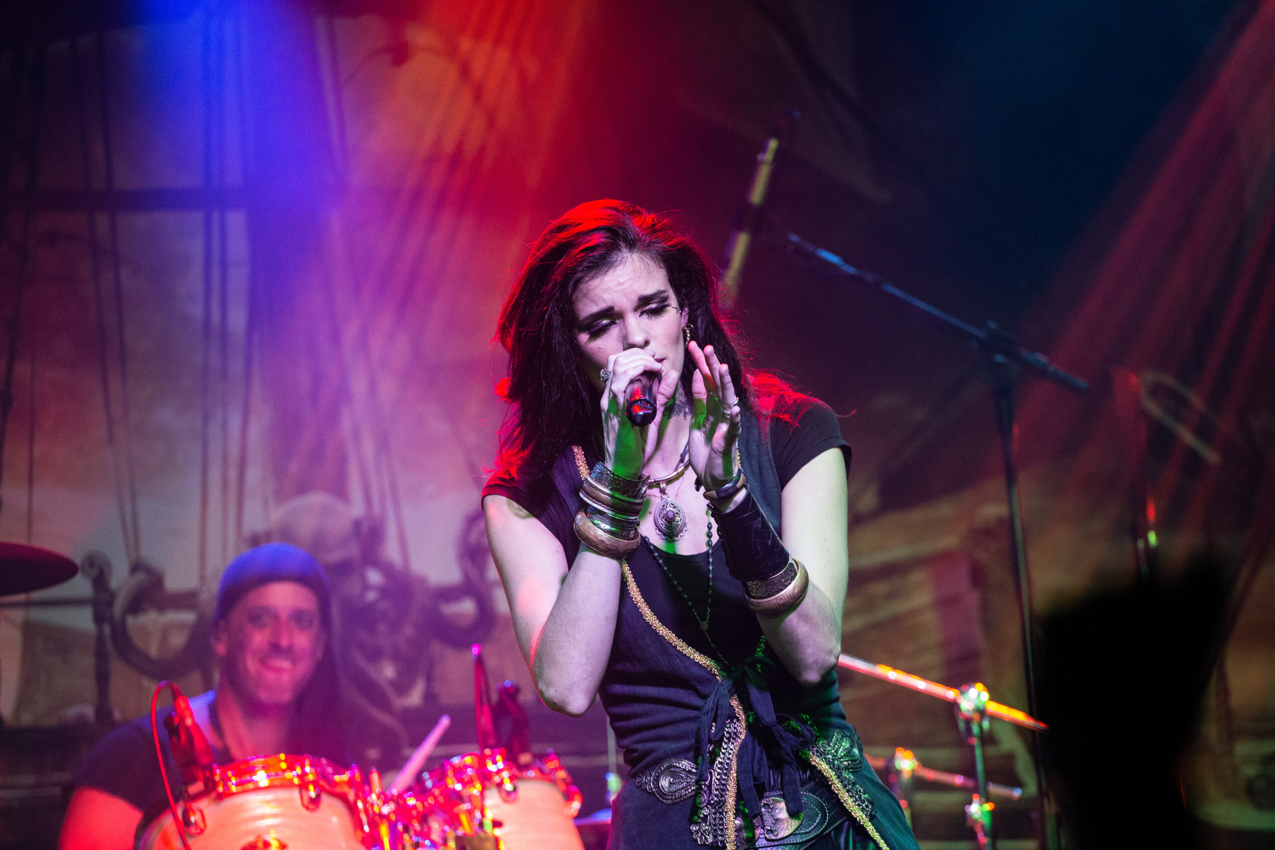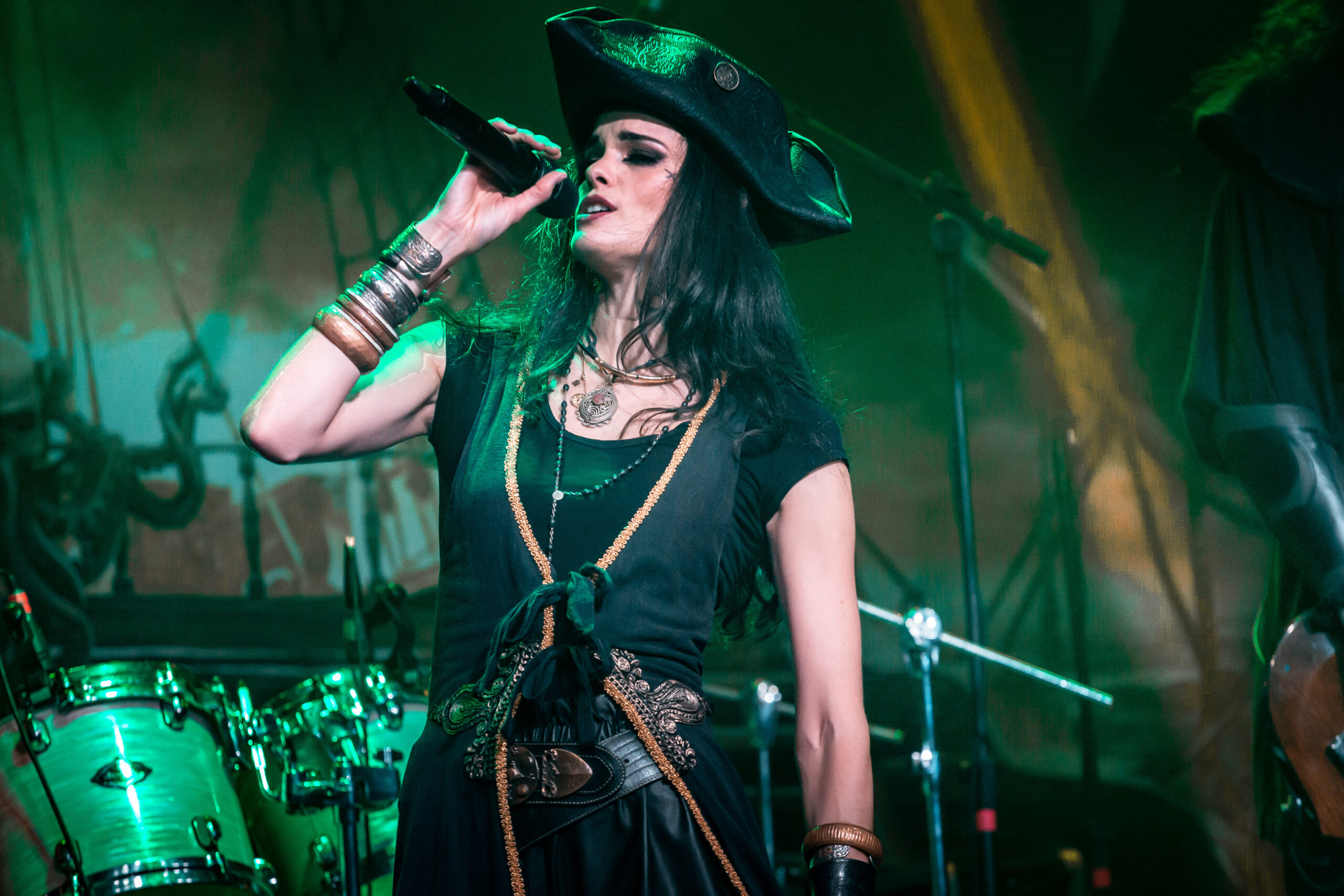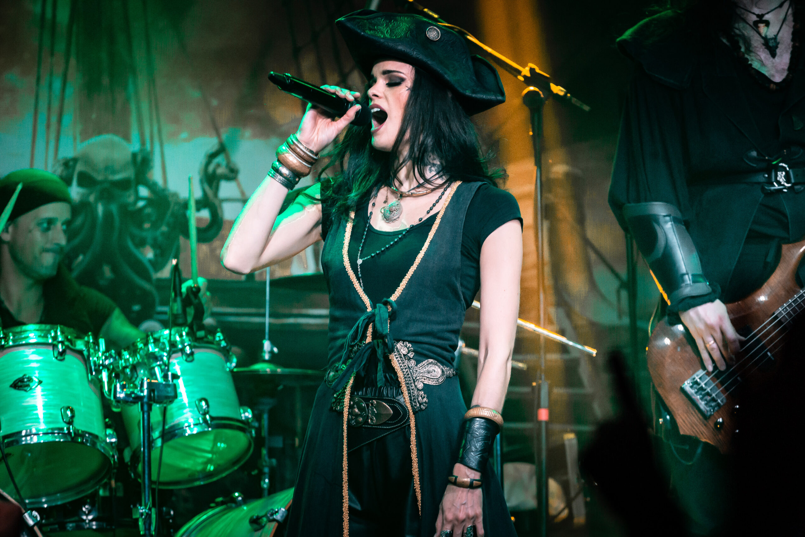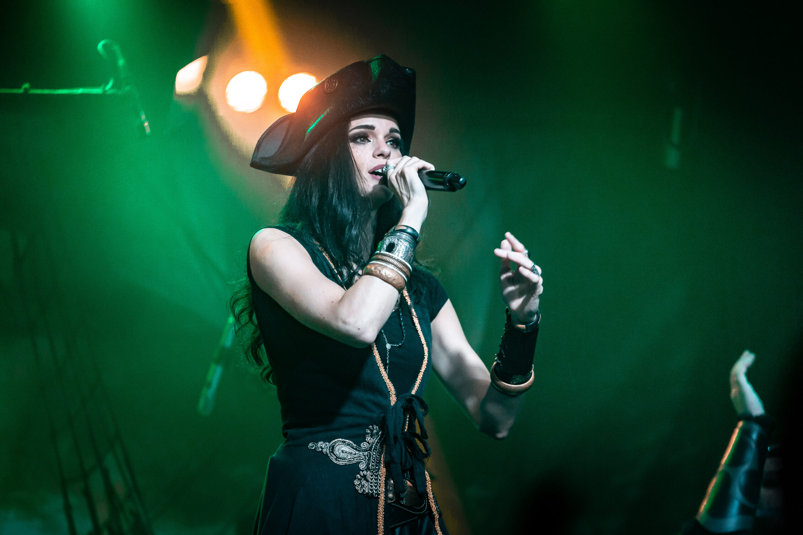 Mantendo as canções emocionantes, a banda toca “Darkness Inside” que também faz parte do álbum “Pirates”. Já do “Deep and the Dark”, eles tocam “Return to Lemuria”, antes, Clémentine conta que a banda passou por diferentes estilos até se encontrarem como piratas, mas era sempre bom retornar à suas origens. Uma coisa que vale muito ressaltar é a qualidade da banda na hora de tocar e as potências vocais dos dois vocalistas. Meek navega por diferentes sonoridades indo dos vocais limpos, aos líricos e drives trazendo uma textura diferente para cada música. Já Clémentine canta com facilidade até mesmo quando alcança notas mais altas e em nenhum momento aparenta ter dificuldade em usar sua voz.