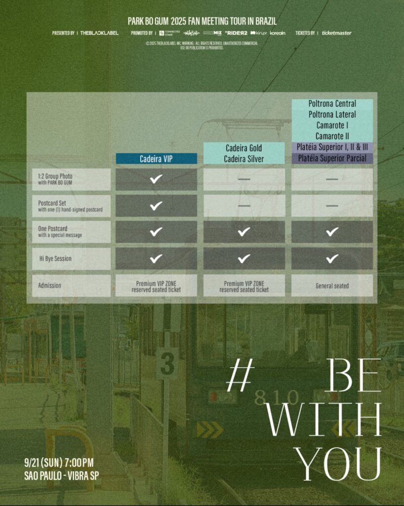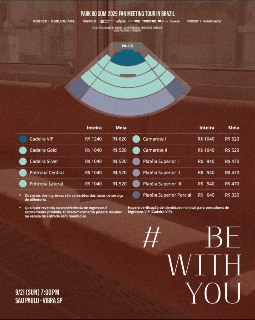 Atenção, fãs de K-dramas! O ator, cantor e apresentador Park Bo Gum, conhecido por seus papéis marcantes em Hello Monster, Love in the Moonlight, entre outros, chega a São Paulo para o Be With You Fan Meeting. O evento acontece no dia 21 de setembro (domingo), na Vibra São Paulo, e a venda dos ingressos começa na próxima segunda-feira, 18 de agosto, às 13h, pelo site www.ticketmaster.com.br