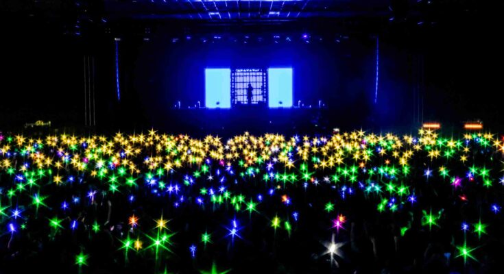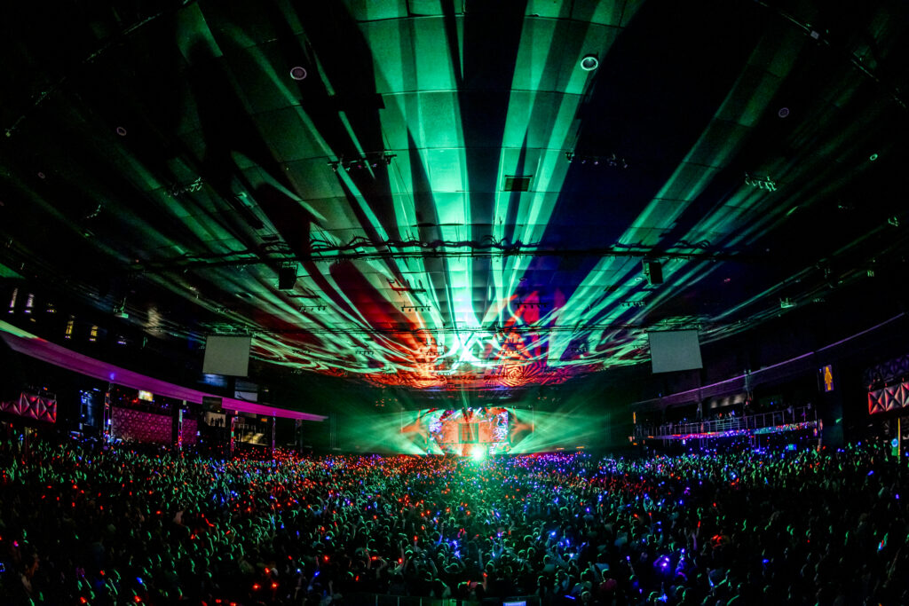 Os telões exibiam diferentes imagens que combinavam com as músicas, enquanto várias luzes vindas de cima giravam sobre o público e iluminavam o ambiente. Do chão do palco, feixes de luz de LED subiam e passavam tão próximos que pareciam roçar as cabeças dos fãs.