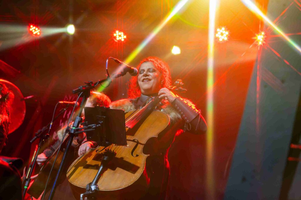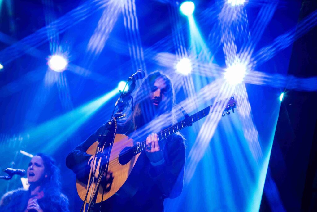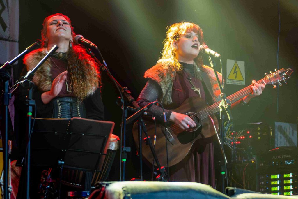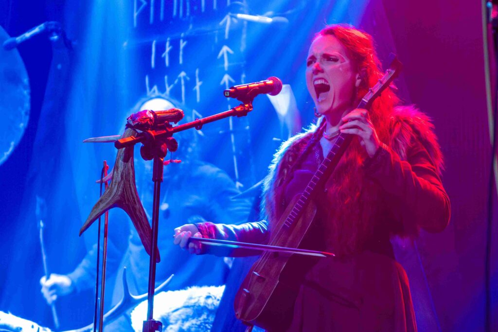 Formada apenas por mulheres, o grupo brasileiro Yön, do mesmo gênero e estilo da banda principal, subiu ao palco pontualmente no horário marcado. Era bem claro que o público não as conhecia, o que poderia ter causado certo nervosismo nas moças. Não foi o caso! Começaram sua apresentação sob muitos aplausos e gritos da plateia, que mesmo não sabendo direito quem eram, logo reconheceram que estavam no lugar certo, na hora certa. Com uma mistura de músicas próprias e “covers” (entre aspas mesmo, pois estão mais para releituras) de clássicos de diversos gêneros, tudo parecia estar em perfeita harmonia. As canções eram em variados idiomas, inclusive: do sueco ao nórdico antigo, ao inglês. Os instrumentos típicos eram destaque — particularmente, eu não imaginaria que o universos conspiraria para pessoas com aqueles conhecimentos musicais, que tocassem aqueles instrumentos tão diferentes, e com gostos musicais tão parecidos e particulares se encontrassem e formassem uma banda; não no Brasil, ao menos, mas aconteceu, e o que se viu foi uma apresentação formidável, de um grupo muito bem ensaiado, e com ótima produção de palco.