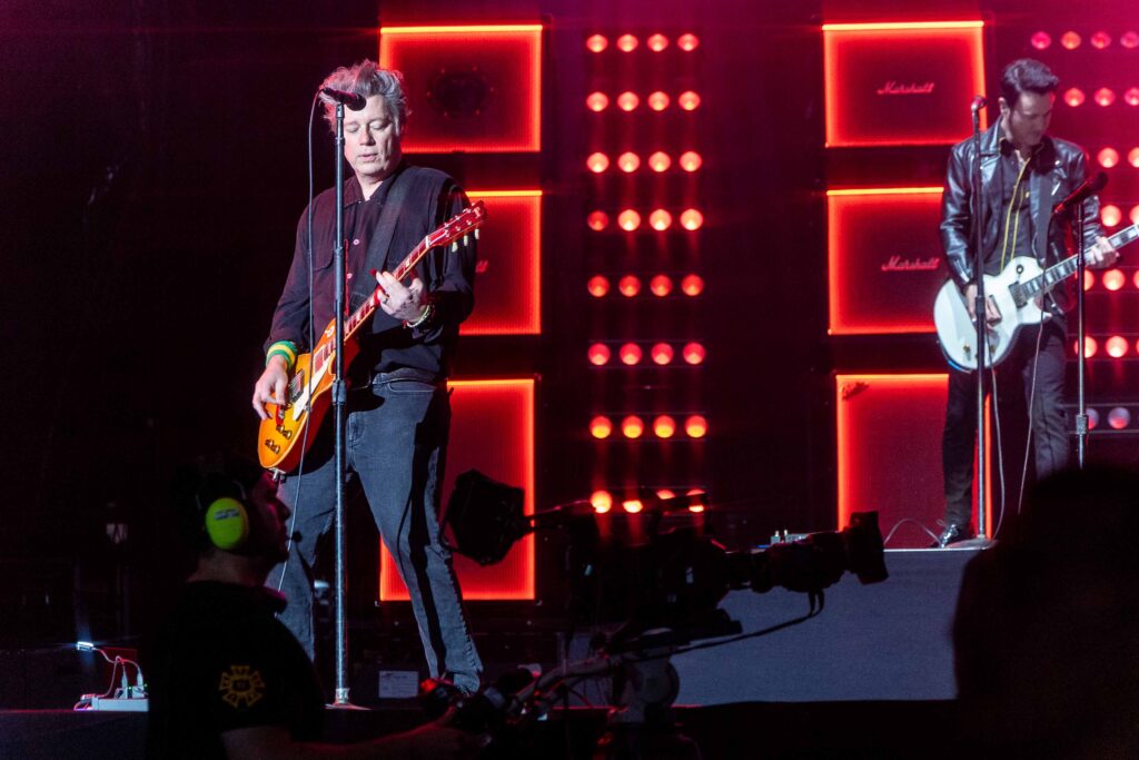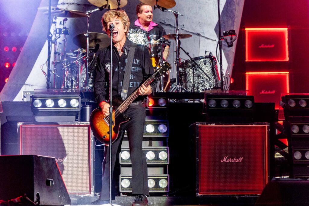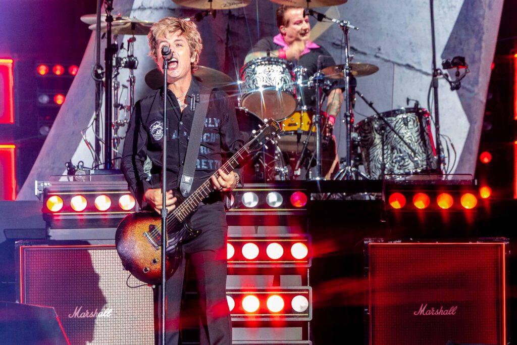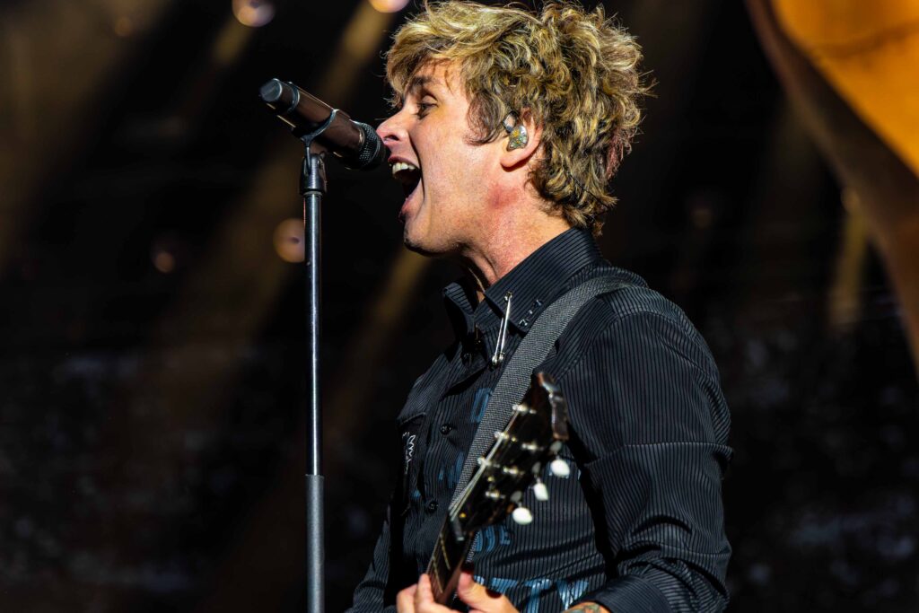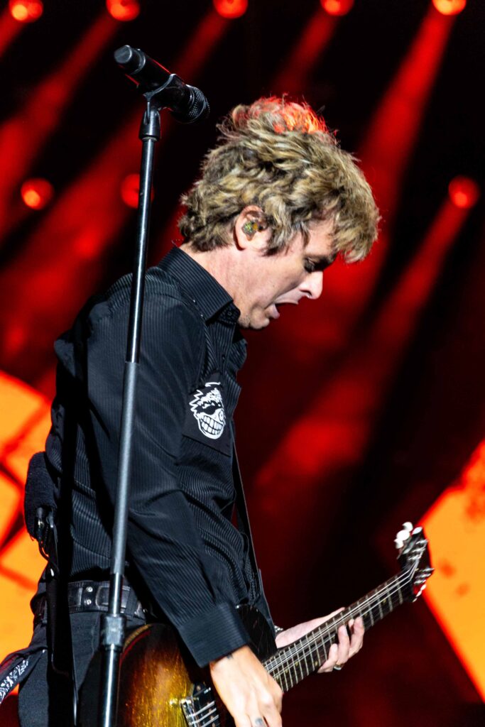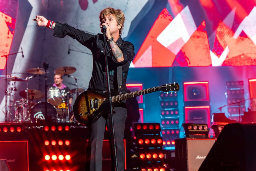 Em “St. Jimmy”, ao final da apresentação, Billie deixa o microfone cair propositalmente em um clássico gesto de “drop the mic”, sinalizando que havia entregue uma performance impecável e de tirar o fôlego. A energia estava tão intensa que, na faixa seguinte, “Dilemma”, Tré Cool faz o mesmo com suas baquetas, lançando-as para o alto em um ato que poderíamos chamar de “drop the drumsticks”, reafirmando o clima explosivo e contagiante do show.