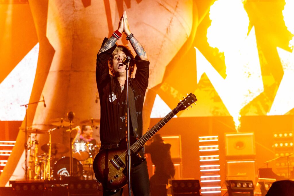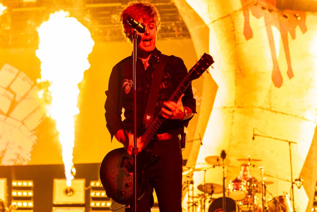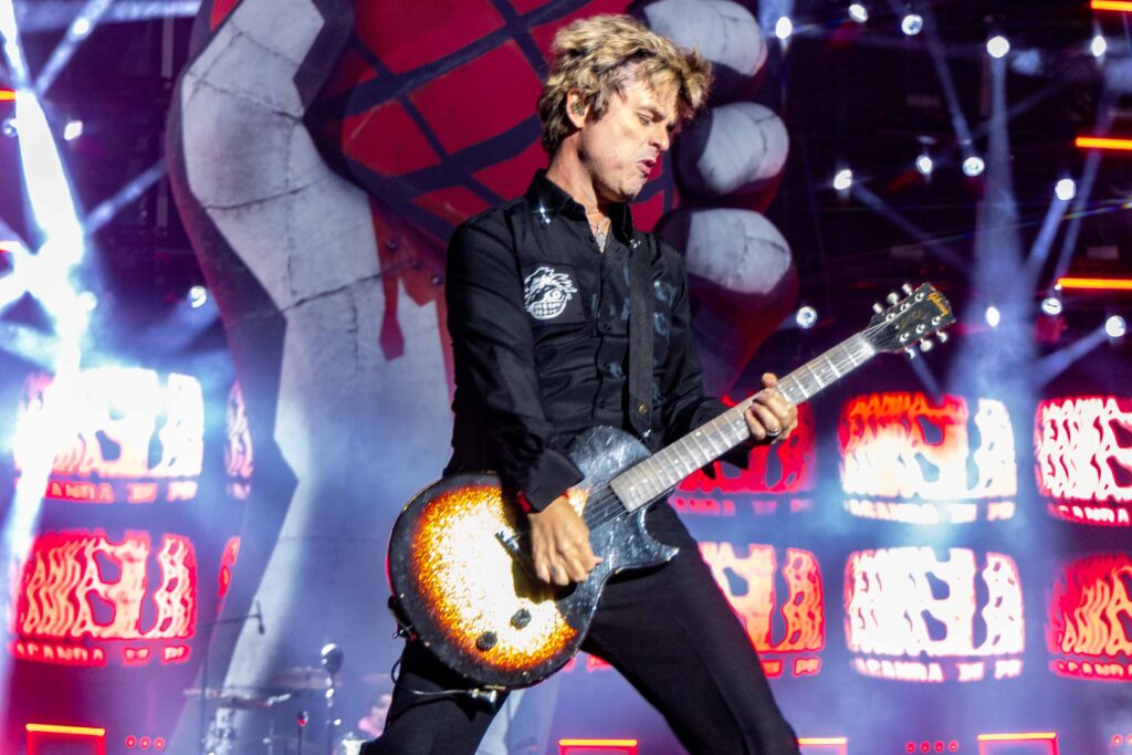 Após “Bobby Sox”, com direito a papel confetti, bateria destruída e quase duas horas de espetáculo ininterrupto, o Green Day se despediu da Arena, deixando para trás uma plateia eufórica e plenamente conectada à energia da banda. No pedido insistente pelo bis, Billie Joe retornou ao palco, desta vez com seu violão em mãos, e apresentou “Good Riddance (Time of Your Life)”, uma das baladas mais emblemáticas do repertório da banda.