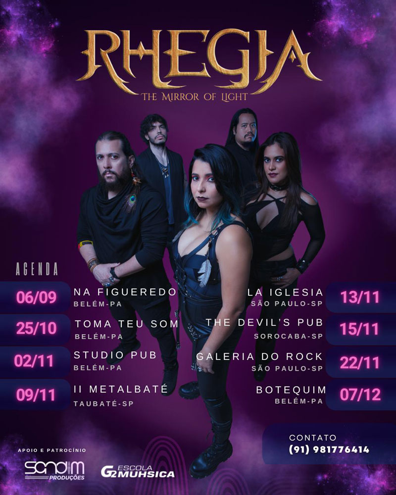 A banda paraense Rhegia, formada por Bianca Palheta (vocal), Saulo Caraveo (guitarra), Naoto Shibata (baixo), Amanda Alencar (vocal e violoncelo) e Michel Machado (bateria), apresenta “The Mirror of Light”, primeiro single e videoclipe que marca o lançamento do novo álbum. Sucessor do aclamado “The Battle of Deliverance” (2023), “The Mirror of Light” é o terceiro álbum de uma trilogia imersa na cultura e mitologia dos povos originários da Amazônia, destacando sua contínua batalha em defesa de sua ancestralidade, cultura e território. O material, que traz arte da capa criada por Romulo Dias, que também assina toda a identidade visual do encarte, foi produzido, mixado e masterizado por Guilherme De Siervi.
