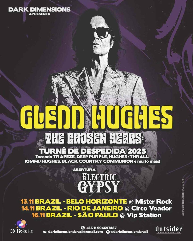 Nos últimos anos, Glenn Hughes manteve uma relação próxima e afetiva com o público brasileiro, que sempre o recebeu com entusiasmo e reverência. Desde os anos 1990, o artista tem se apresentado regularmente no país, consolidando uma conexão emocional rara entre artista e fãs. Agora, com a The Chosen Years Tour, essa história ganha seu capítulo final — não como um adeus melancólico, mas como uma celebração de vida, arte e legado.