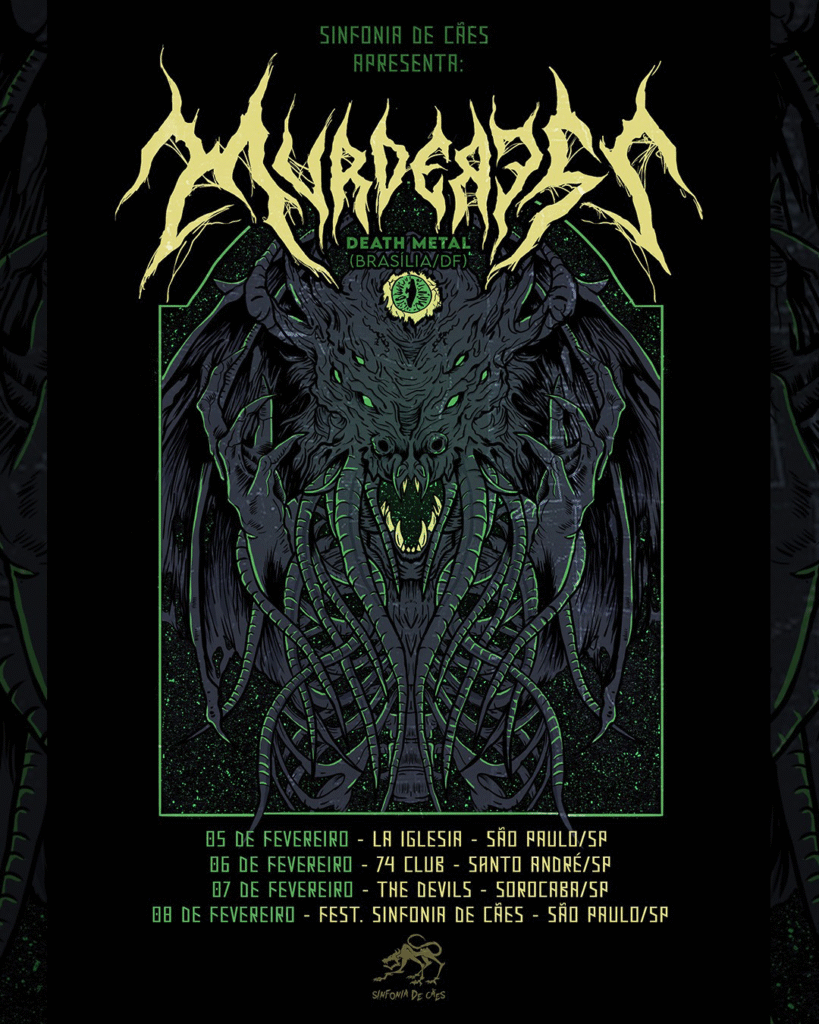 A banda brasiliense de metal extremo Murderess, formada por Claudia Franco (vocal), Jazz Kaipora (guitarra), Clarissa Carvalho (baixo) e Pedro Fraga (bateria), anunciou quatro apresentações no estado de São Paulo para o início de 2026. Formada em Brasília em dezembro de 2022, a banda é conhecida pela sonoridade brutal e por letras que exploram temas como morte, violência e resistência, sempre sob uma perspectiva feminina.