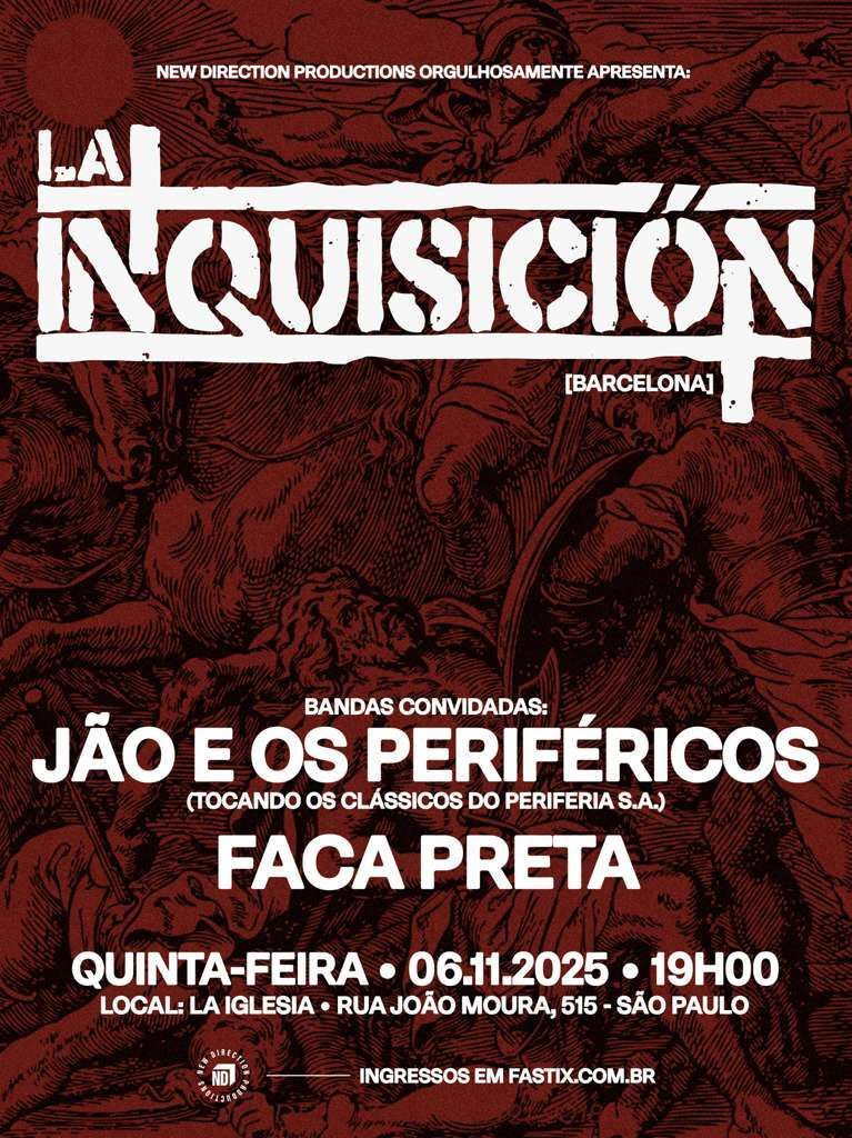 Ingressos: https://fastix.com.br/events/la-inquisicion-barcelona-em-sao-paulo