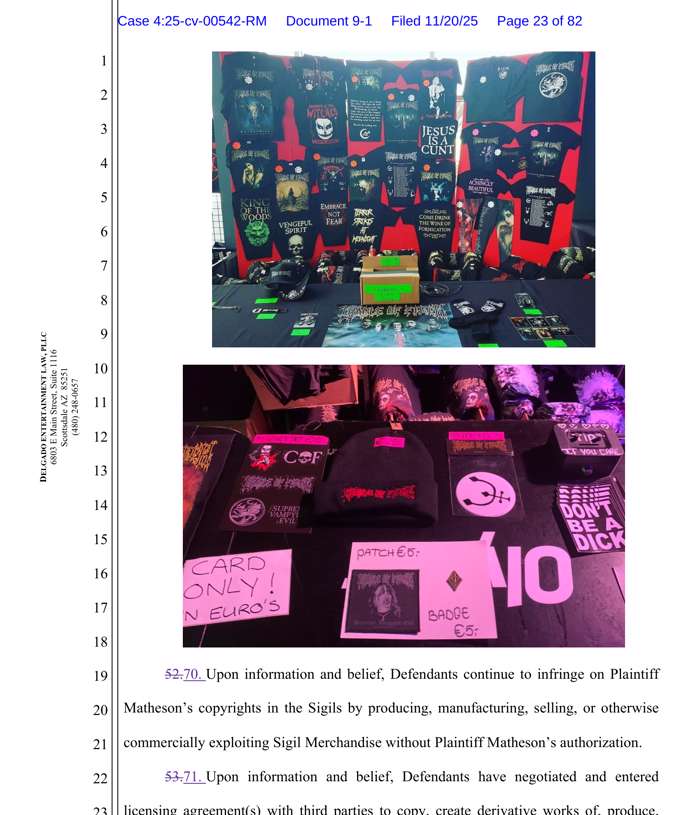 Os autores afirmam ainda que produtos com suas imagens seguem sendo comercializados em turnês recentes, inclusive em shows presenciais, mesmo após suas objeções.