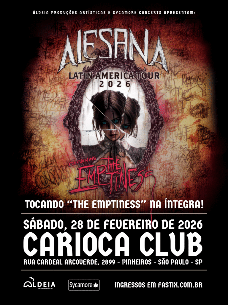 Os norte-americanos do Alesana, uma das bandas mais relevantes da cena post-hardcore/screamo mundial, retorna ao Brasil em fevereiro de 2026, com show único em São Paulo, dia 28/02 (Carioca Club). Na ocasião, o grupo celebra 15 anos do álbum The Emptiness, o terceiro trabalho de estúdio e considerado por fãs e imprensa como o mais inspirado do quarteto, que será tocado na íntegra ao lado de outros hits.