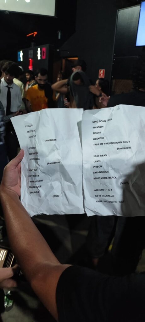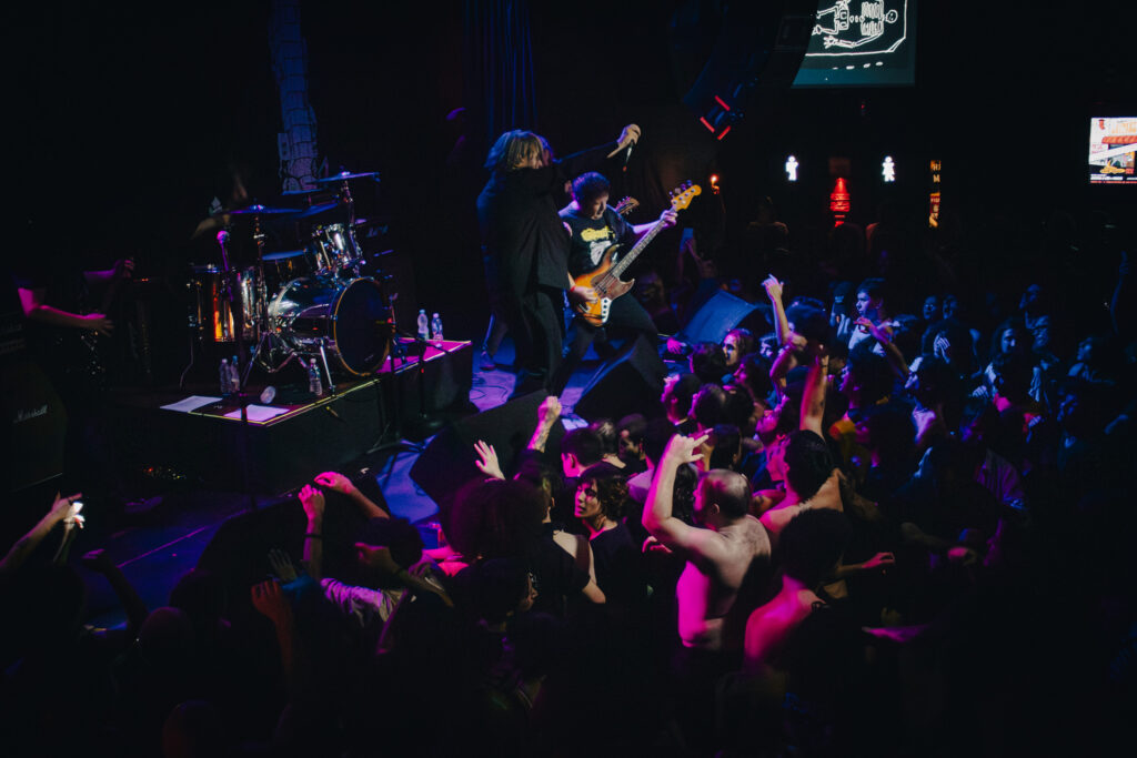 O desfecho da noite já estava escrito para ser histórico. Quando a banda finalmente subiu ao palco, qualquer tentativa de contenção se dissolveu instantaneamente. Desde os segundos iniciais, o público começou a se amontoar e disputar cada centímetro à frente do palco. Pequenos moshs surgiam e desapareciam como ondas, os stage dives aconteciam de forma quase contínua e vários crowd surfing, alguns bem-sucedidos, outros interrompidos pela gravidade e pelo excesso de corpos. Tudo parecia muito urgente, latente.