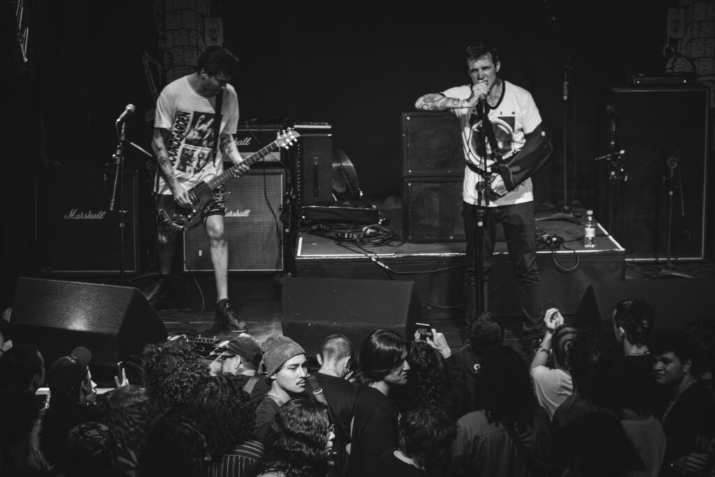 A Uniform, por sua vez, trouxe uma ruptura sonora que funcionou justamente por não ser óbvia. O duo nova-iorquino não conversa diretamente com o screamo da noite, mas encontra um terreno comum quando o assunto é potência e posicionamento. Sem rodeios, subiram ao palco e despejaram um set pesado, barulhento e caótico. E se existe desordem nos acordes, há coesão absoluta no discurso.