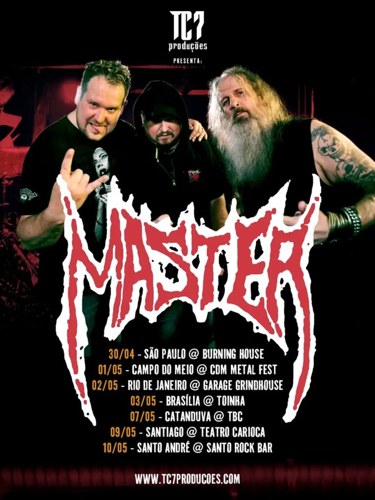 Um dos pilares do Death Metal mundial, a banda Master retorna ao Brasil para divulgar seu álbum mais recente, “Saints Dispelled”, lançado em 2024.
