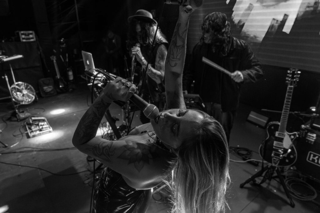 Johnny Monster contrasta de maneira harmoniosa com os vocais melódicos de Juliana Chacon, criando uma atmosfera obscura sustentada pelo arranjo bem executado pelos irmãos Molina e Joe. Um dos pontos altos foi o cover de “Alice”, do Sisters of Mercy, executado com extrema fidelidade — curiosamente, a banda mantém um projeto paralelo dedicado a covers, o Sisters of Monster, o que ajuda a explicar a familiaridade sonora. A resposta do público foi imediata, com boa participação e clima já aquecido para o ato principal.