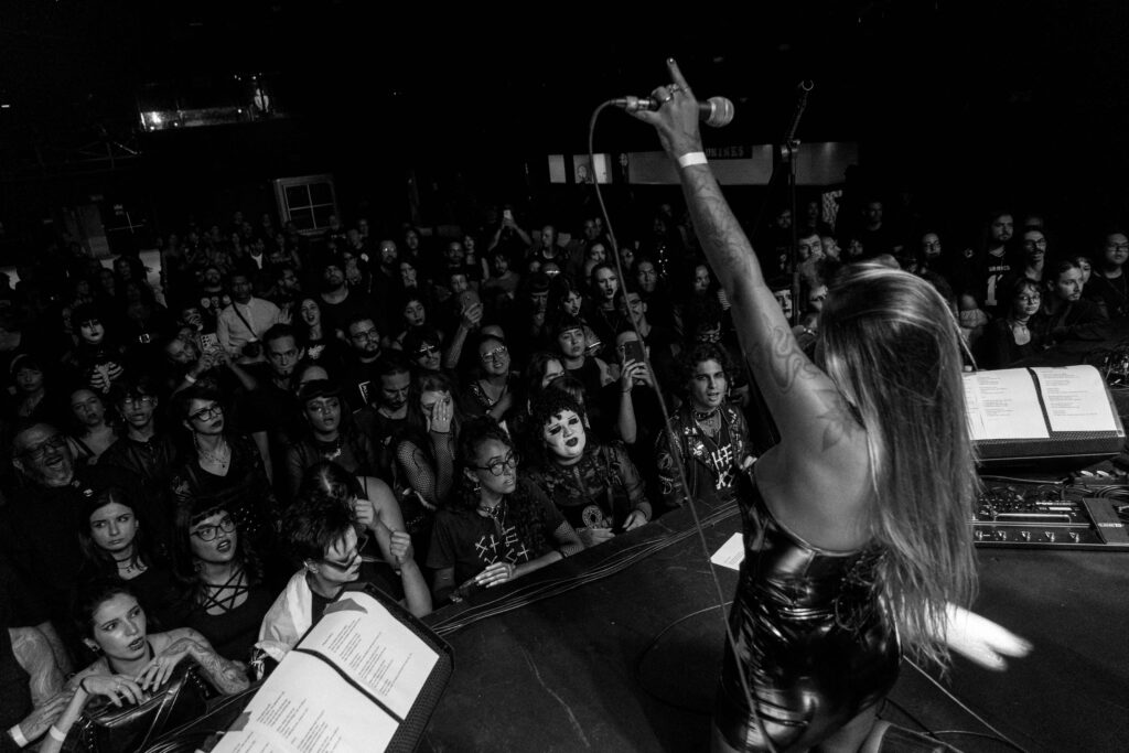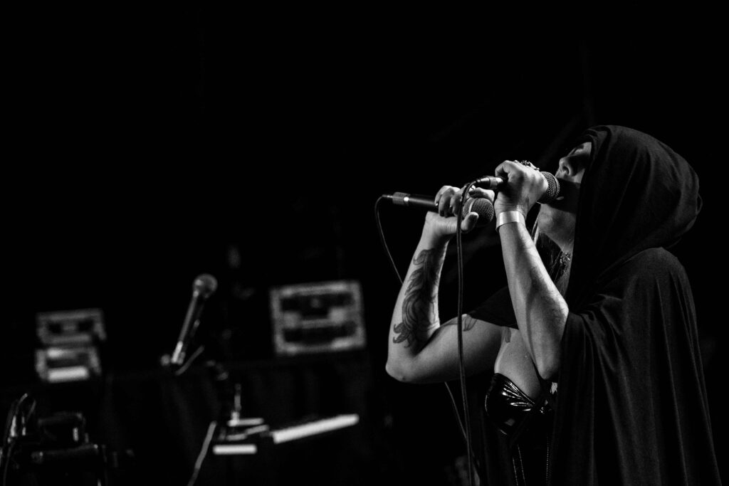Como esperado em um show de um duo gótico, não houve grandes deslocamentos ou interações físicas em palco. Ainda assim, era perceptível a sintonia da performance e o prestígio da plateia. No universo do darkwave, a atmosfera é protagonista, e nesse aspecto o She Past Away entregou exatamente o que se espera: um espetáculo imersivo, guiado por climas sombrios, repetição ritualística e uma estética bem definida.