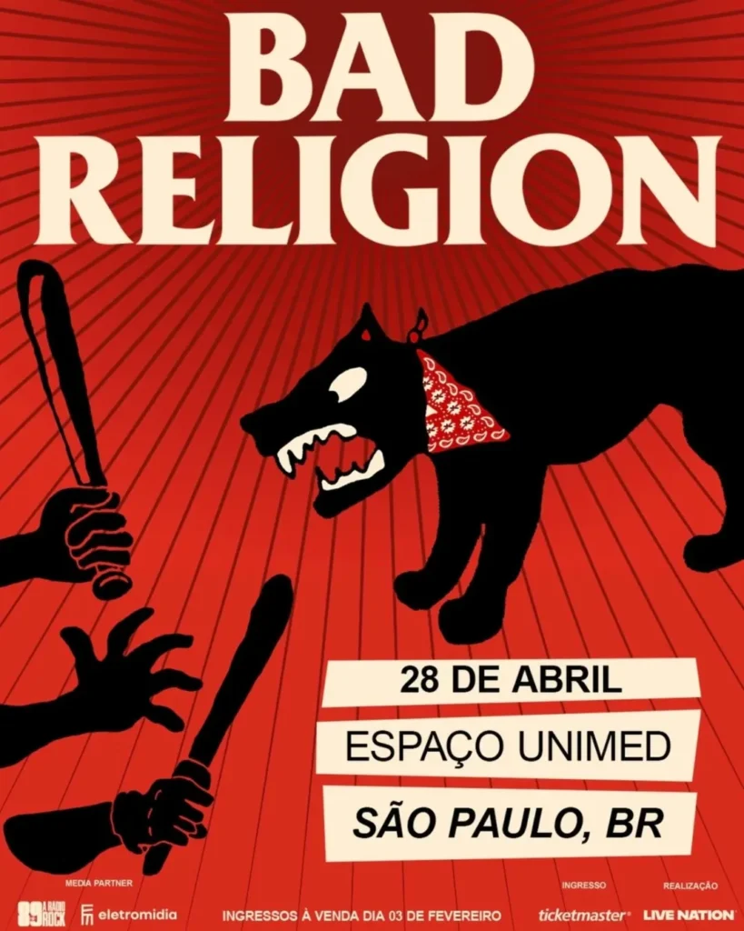 Ícone do punk rock mundial, o Bad Religion confirmou retorno ao Brasil com apresentação marcada para o dia 28 de abril de 2026, no Espaço Unimed, em São Paulo. A banda volta ao país poucos meses após ter se apresentado no festival The Town 2025, onde substituiu o Sex Pistols feat. Frank Carter.