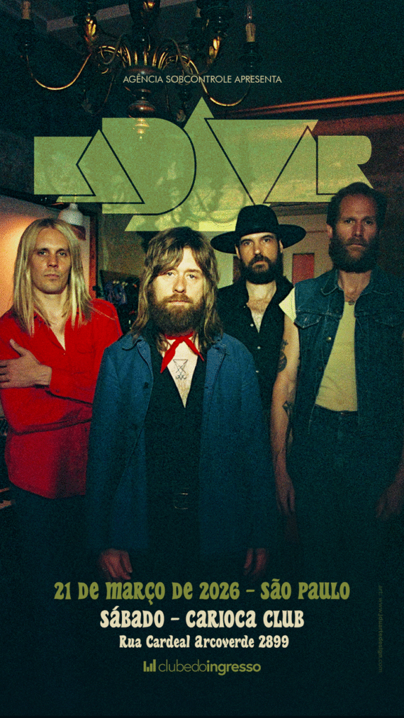 Março de 2026 acontece o tão esperado retorno ao Brasil da banda alemã de space/stoner rock Kadavar, o maior expoente mundial do estilo. Será show único no país, dia 21/03, um sábado, em São Paulo/SP, no Carioca Club. A realização é da Agência Sobcontrole.