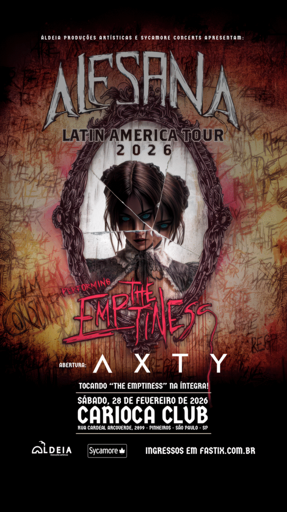 Consolidada como uma das maiores potências do metalcore brasileiro atual, a Axty será a atração de abertura. O anúncio coroa um momento histórico para a banda paulista, que recentemente expandiu suas fronteiras ao assinar com a gigante austríaca Napalm Records e concluir a primeira turnê pelos Estados Unidos.