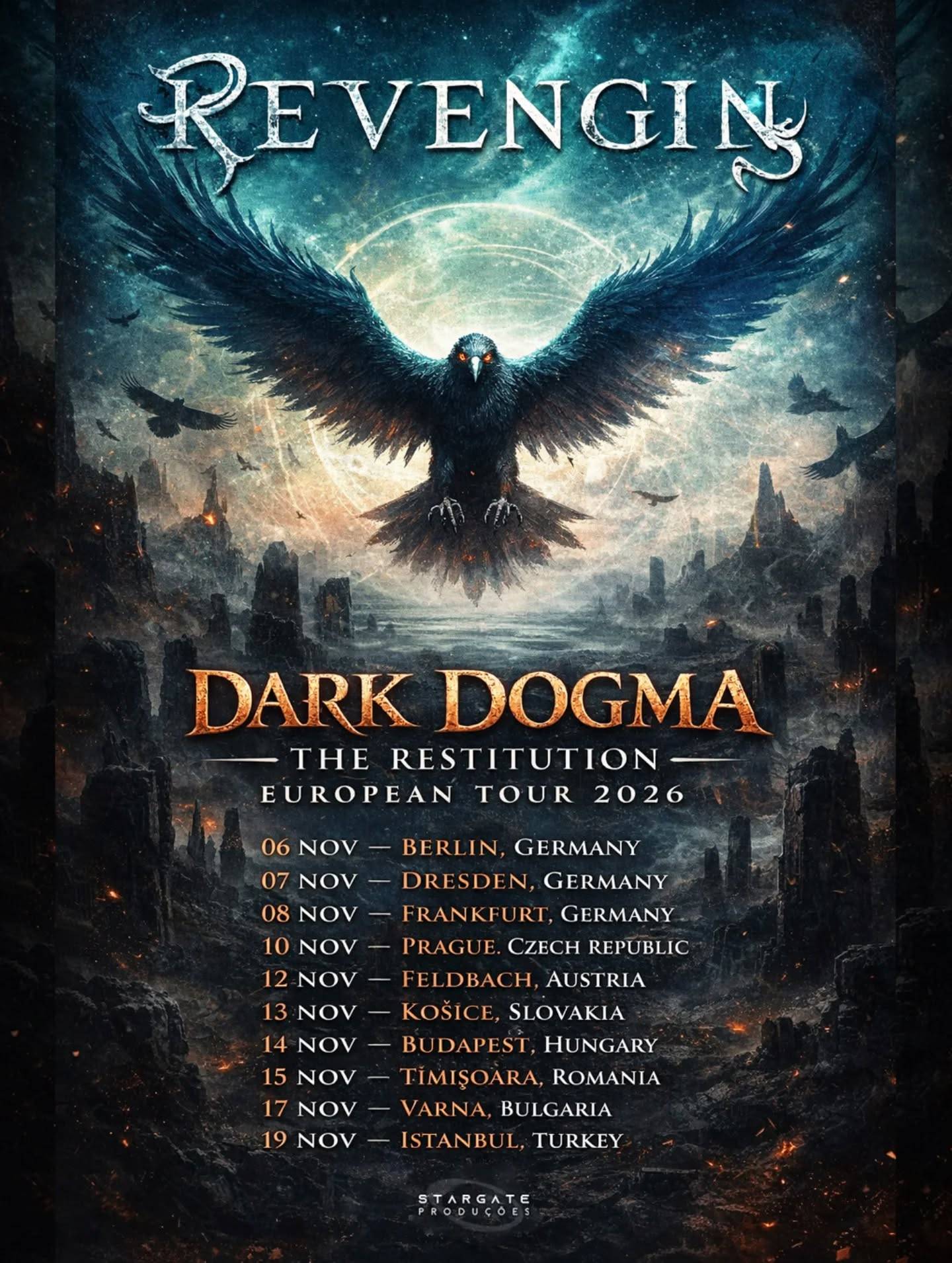 “Após a incrível recepção do público europeu no ano passado, estamos muito felizes em anunciar que voltaremos ao velho continente em novembro deste ano com a Dark Dogma The Restitution European Tour 2026! E, pela primeira vez, teremos três datas na Alemanha e, depois, iremos para países onde nunca nos apresentamos, como Turquia e Bulgária, além, claro, de muitos outros por onde já passamos antes! Estamos muito animados com isso!!! Fiquem ligados, porque ainda vem muito mais por aí!”, comentou Bruna.