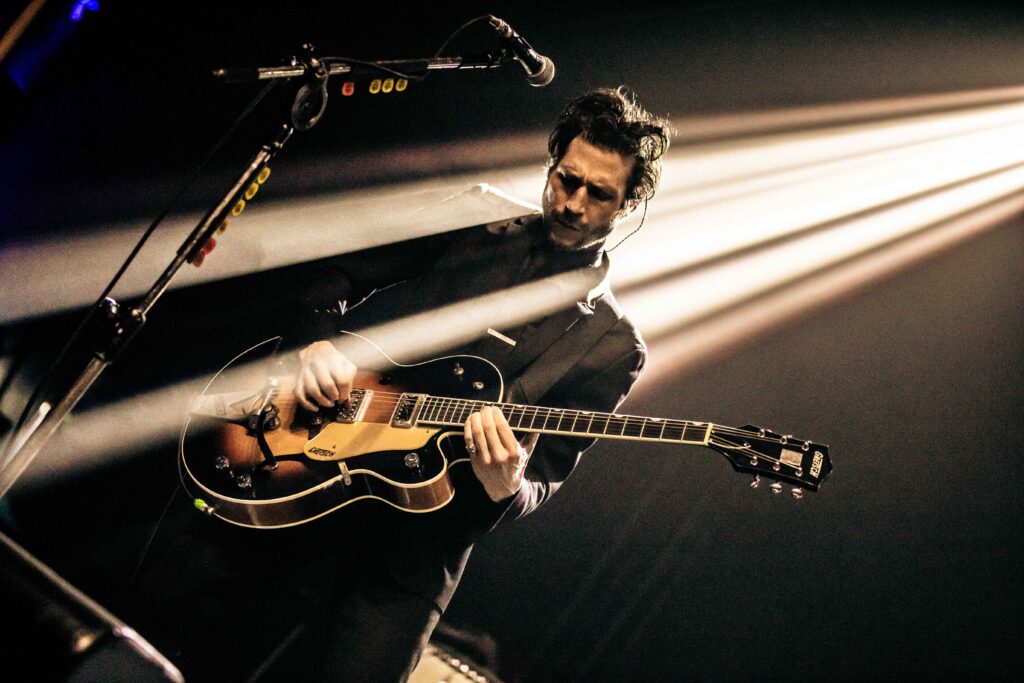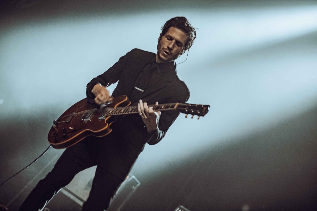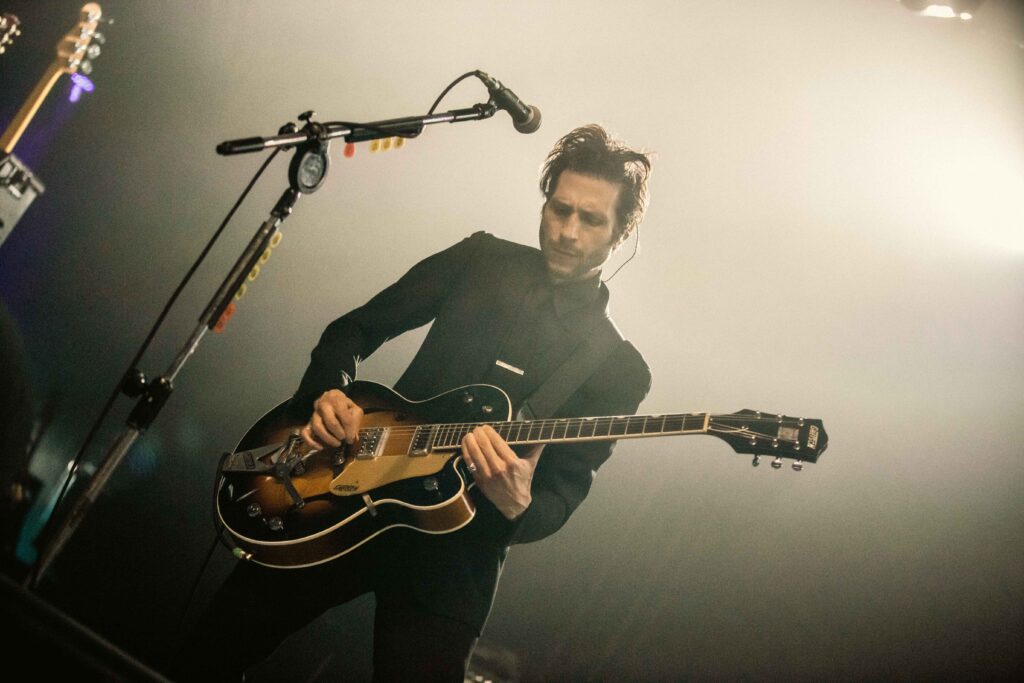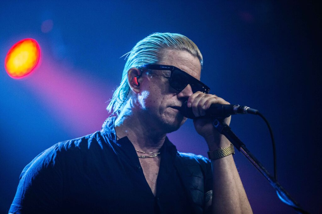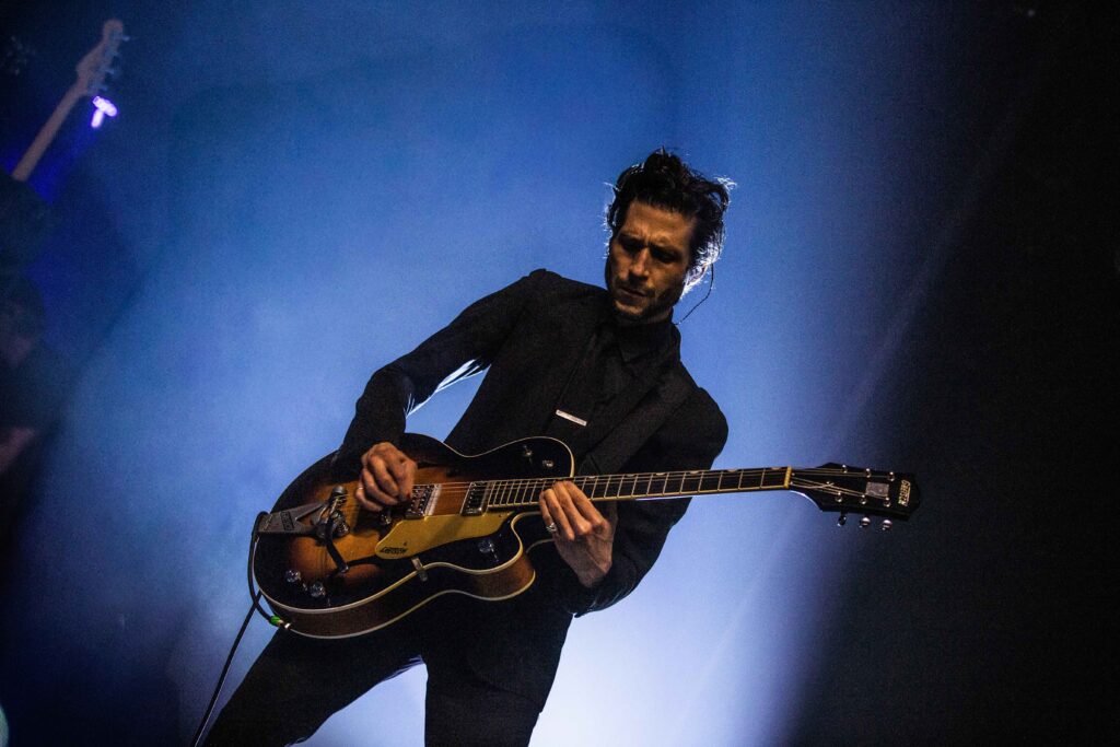 Depois da “bagunça” do Viagra Boys, o Interpol trouxe um tom mais introspectivo para o palco da Audio. Com um jogo de luzes mais escuras, criando uma estética mais sóbria para a apresentação, o vocalista e guitarrista Paul Banks, o guitarrista Daniel Kessler, o baixista Brad Truax (que acompanha a banda em turnês) e o baterista Urian Hackney, que estava substituindo Sam Fogarino, que está afastado por problemas de saúde, transformaram a Audio em um baile indie/pós-punk.