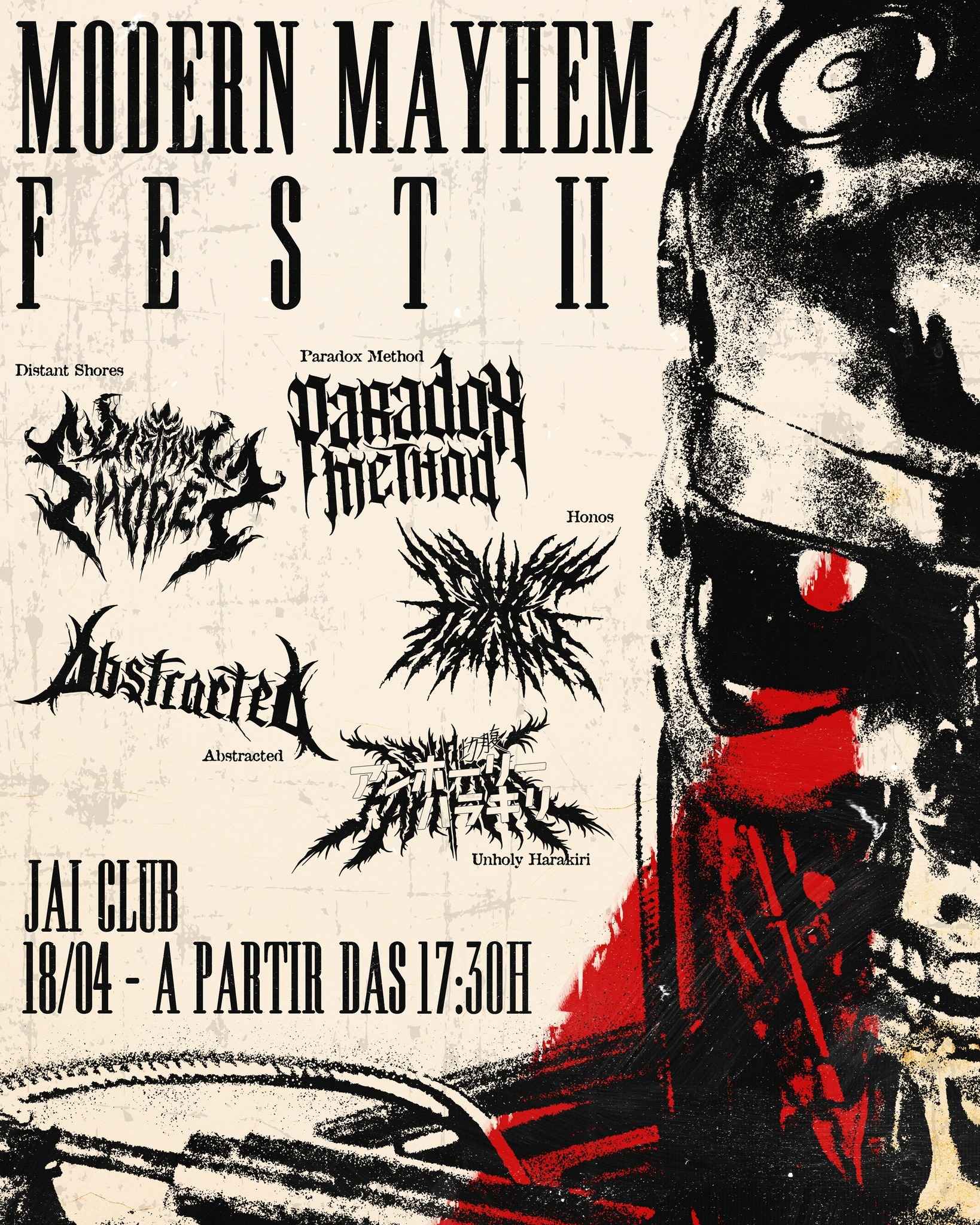 No dia 18 de abril, São Paulo recebe a segunda edição do Modern Mayhem Fest, reunindo cinco nomes que representam bem o recorte mais atual do metal extremo e do metal moderno feito no país. O evento acontece no Jai Club, com abertura da casa às 17h30, e coloca no mesmo cartaz Paradox Method, Honos, Distant Shores, Abstracted e Unholy Harakiri.
