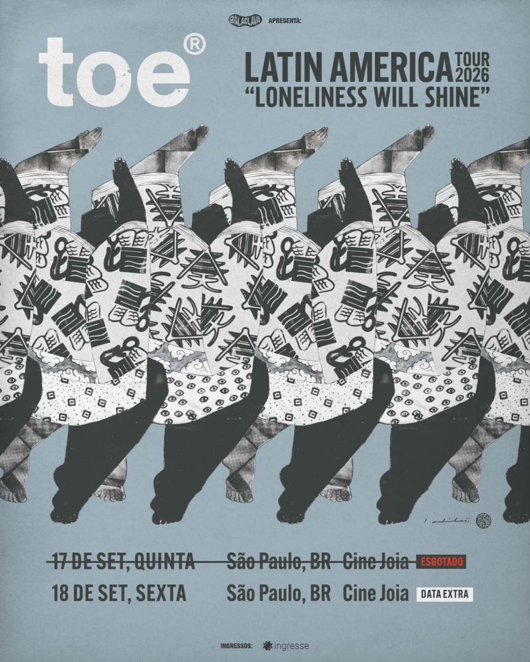 A banda japonesa toe tem data marcada para retornar ao Brasil. O grupo se apresenta no dia 17 de setembro, no Cine Joia, em São Paulo, em um show que celebra os 25 anos de carreira. Os ingressos já estão à venda.