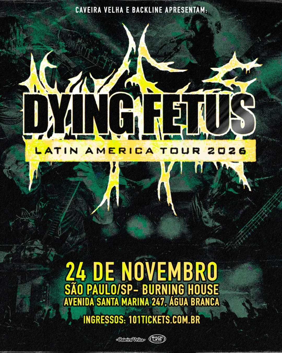 A lendária banda norte-americana Dying Fetus confirmou seu retorno ao Brasil para uma apresentação única em São Paulo. O show acontece no dia 24 de novembro de 2026, na Burning House, e promete reunir fãs de diferentes fases da carreira do grupo. A realização é da produtora Caveira Velha Produções