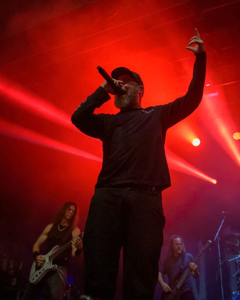 Na parte intermediária do set, “Meet Your Maker” e “State of Slow Decay” trouxeram o peso das composições mais recentes, mostrando como o grupo mantém relevância sem abandonar suas raízes. “Alias” e “The Mirror’s Truth” reforçaram essa ponte entre passado e presente, sendo que, nesta última, o vocalista incentivou a abertura de uma grande roda no meio da pista, prontamente atendido pelos fãs, em um dos momentos mais visuais e intensos da apresentação.