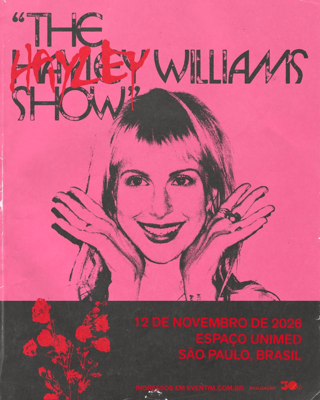 “The Hayley Williams Show” está chegando ao Brasil. Em uma realização da 30e, maior companhia brasileira de entretenimento ao vivo, a turnê desembarca em São Paulo no dia 12 de novembro, no Espaço Unimed. A pré-venda para fãs terá início no dia 4 de maio, às 10h, com duração de 24 horas. A venda geral começa no dia 6 de maio, às 10h, pela Eventim (acesse aqui). O cadastro verificado para a pré-venda pelo HW HQ começa hoje 27 de abril, às 10h, e também dura 48 horas (acesse o link).